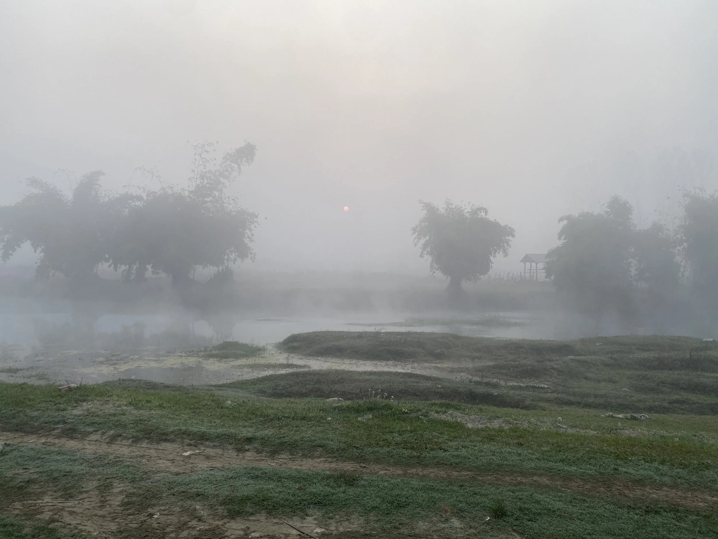 Mist covered everything when I woke up. The sun rising gave everything a strange peach and orange hue. The flapping wings of water birds could be heard before they passed overhead and disappeared again through the mists. I was well ready when we hopped on the motorbike towards the river where large canoes lined up. Each had long poles to push us along like a Venetian gondola. It was myself, two guides, perhaps my age or even a bit younger, and the man who led the boat.